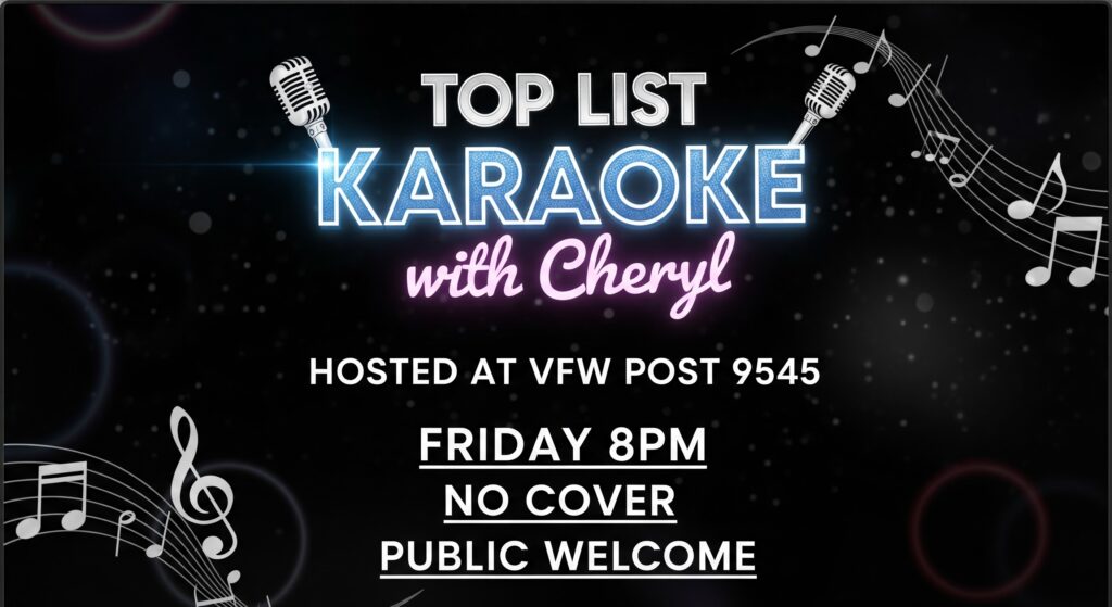 NL VFW Top List Karaoke With Cheryl. No Cover – Public Welcome 21+