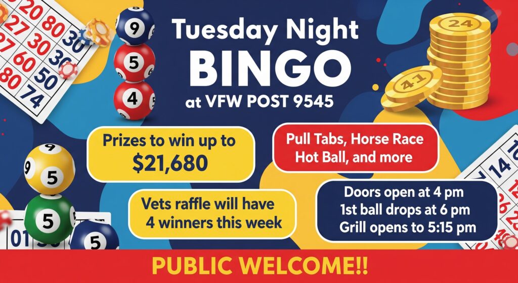 Tuesday Night is Bingo Night in the Hall at New Lenox VFW Post 9545, and