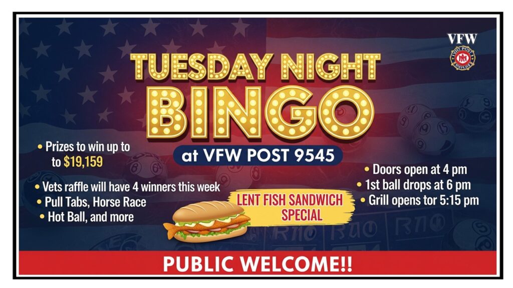 In 2025, our Tuesday Night Bingo paid $193,803.00 in cash prizes, including Bingo, Raffles, and Pull Tabs. Congratulations!!